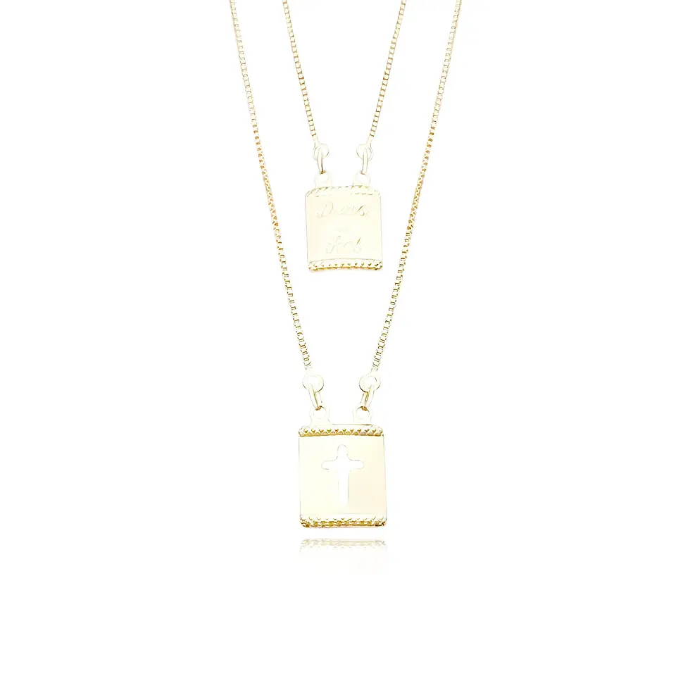 Escapulário Cruz e Deus é Fiel 1mm (Veneziana) (Banho Ouro 24k)